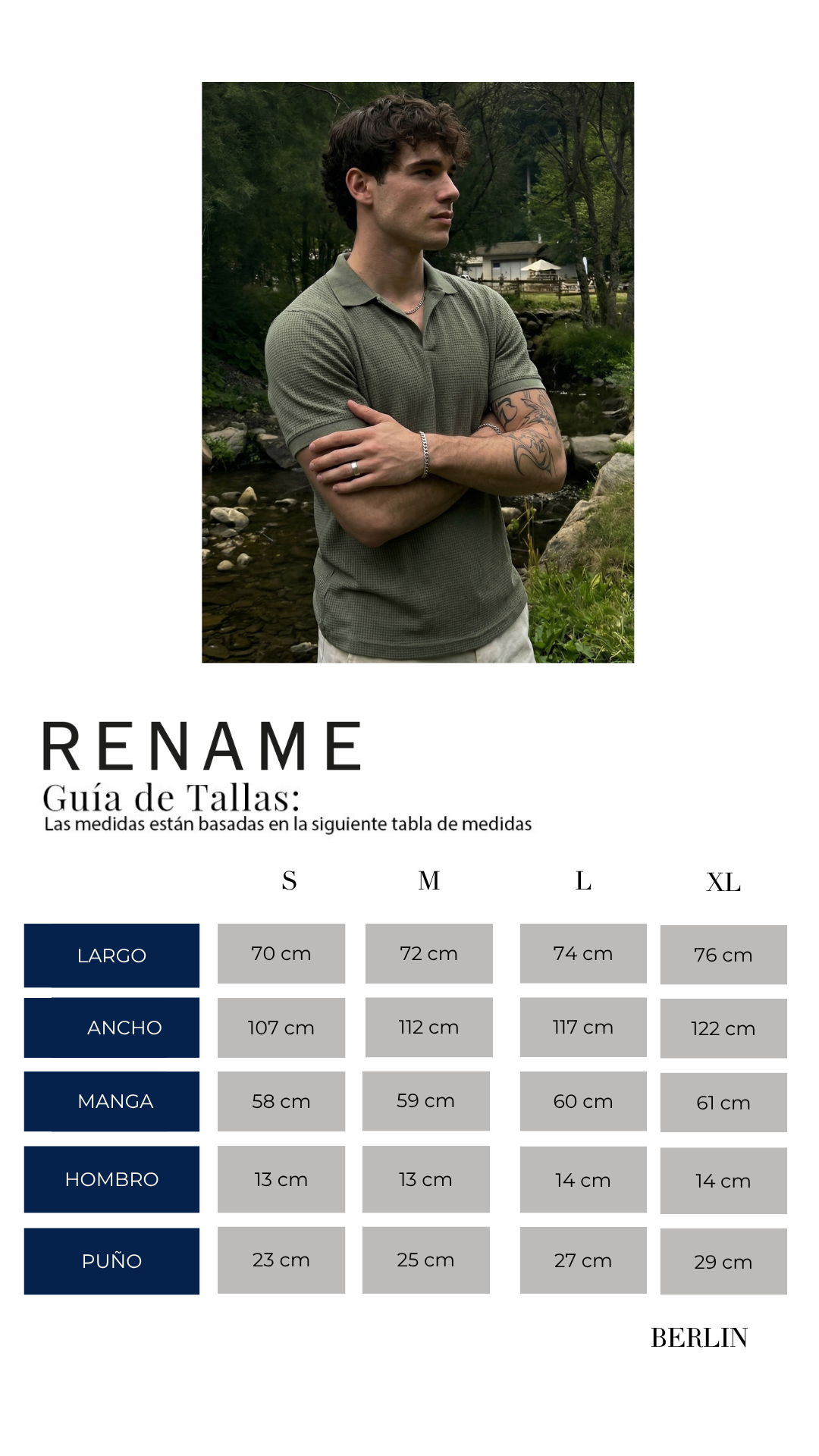 El modelo mide 1.78 cm y usa talla M.